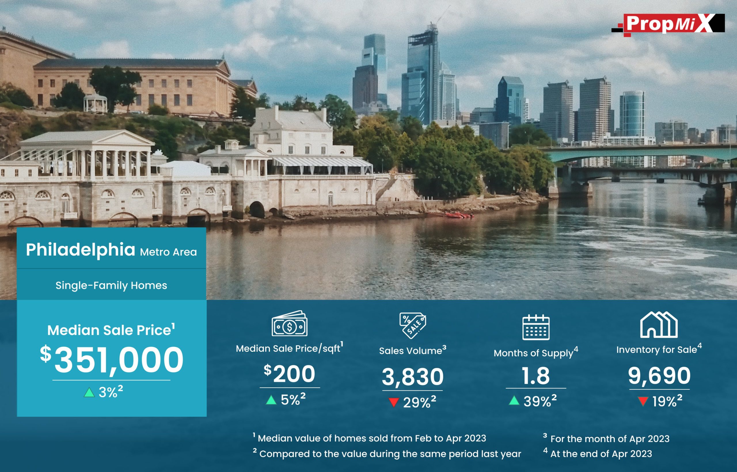 Philadelphia metro area saw a considerable upswing in the median sale price of single-family homes sold between February and April 2023, with the median sale price reaching $351,000 and representing a 5% increase compared to the corresponding period in the preceding year.