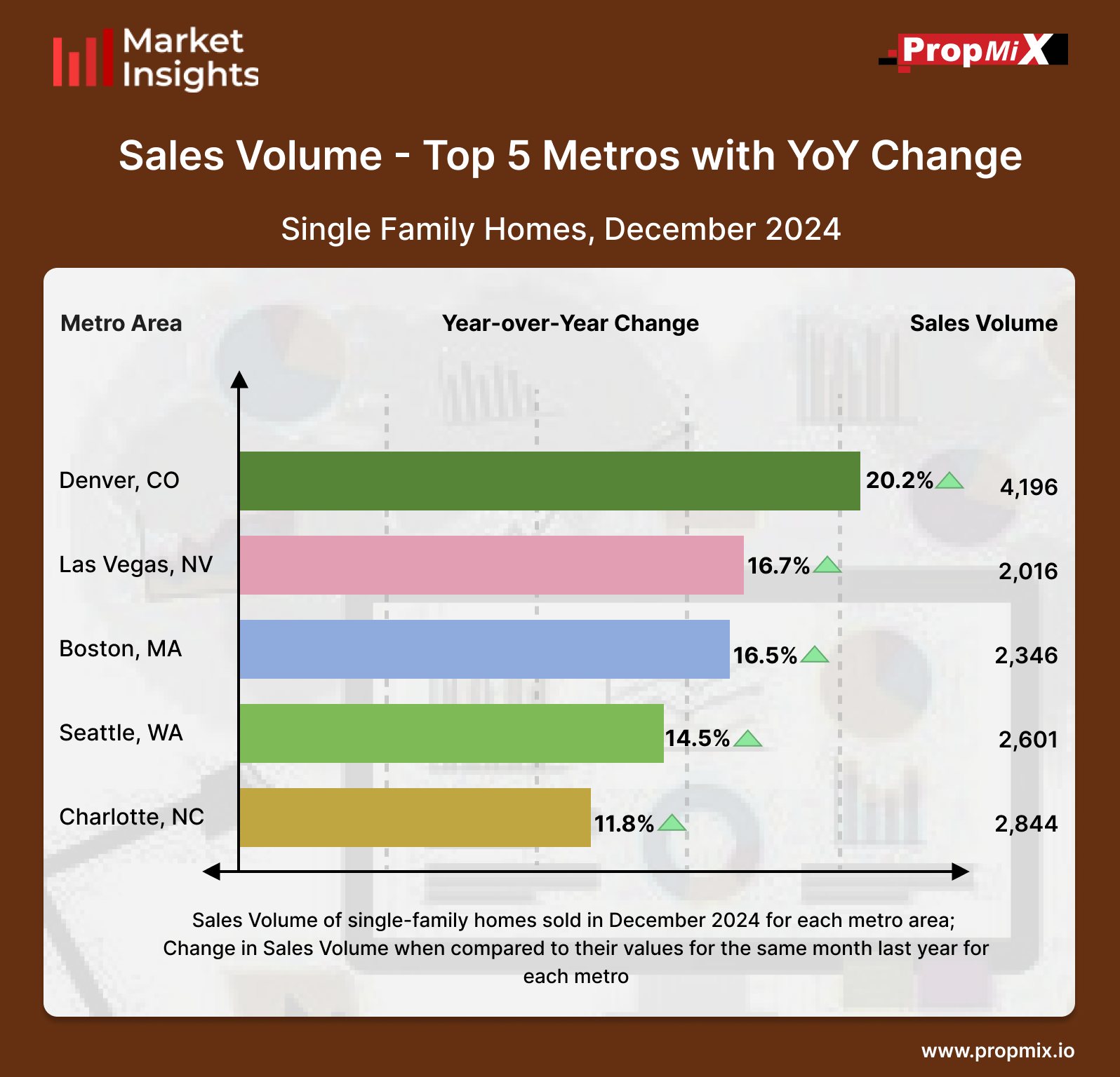 For a detailed view of all 30 metro areas that we track and more insights, visit our Interactive Market Insights page. Learn more about the metrics in PropMix Market Insights.