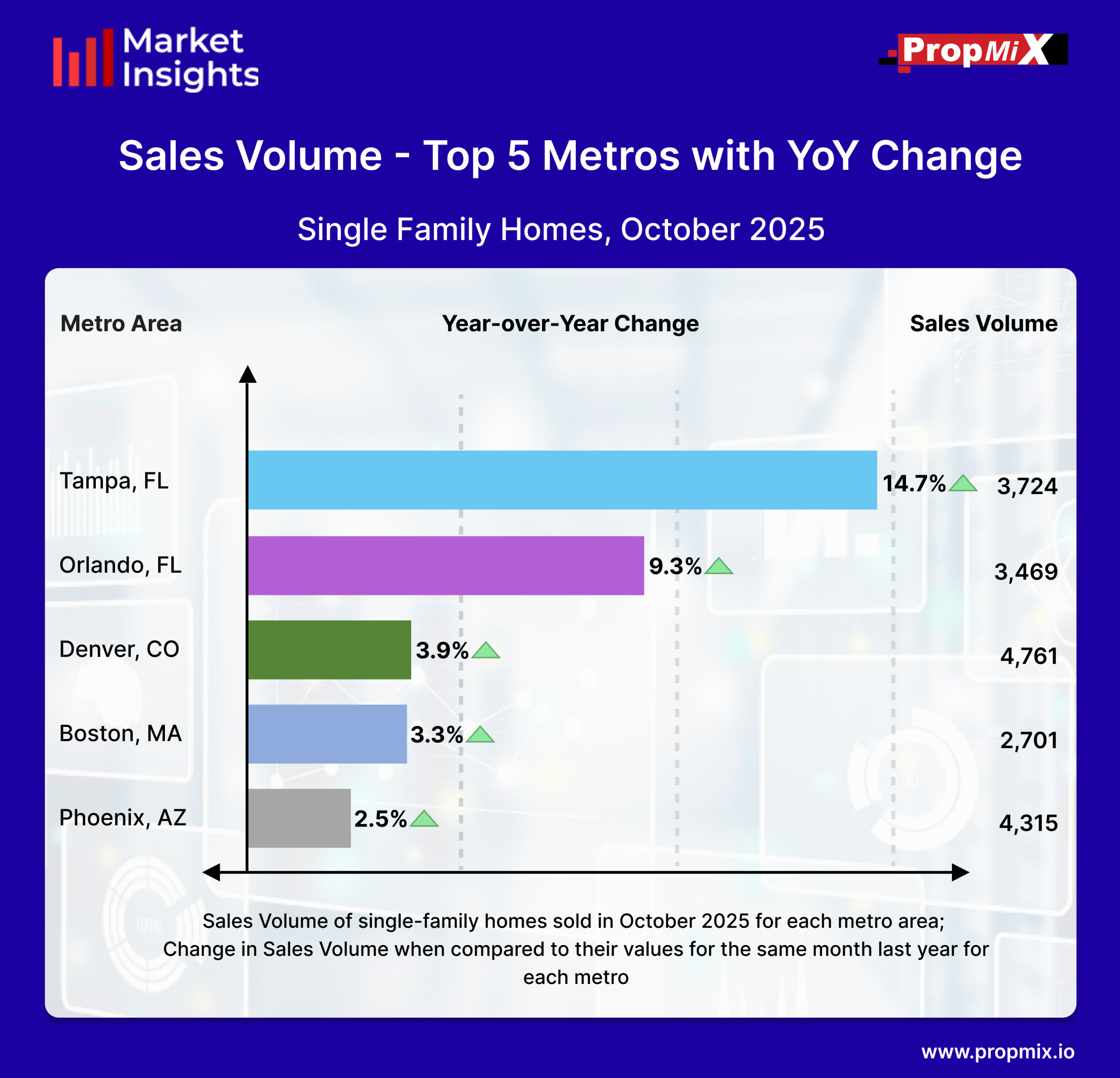 For a detailed view of all 30 metro areas that we track and more insights, visit our Interactive Market Insights page. Learn more about the metrics in PropMix Market Insights.