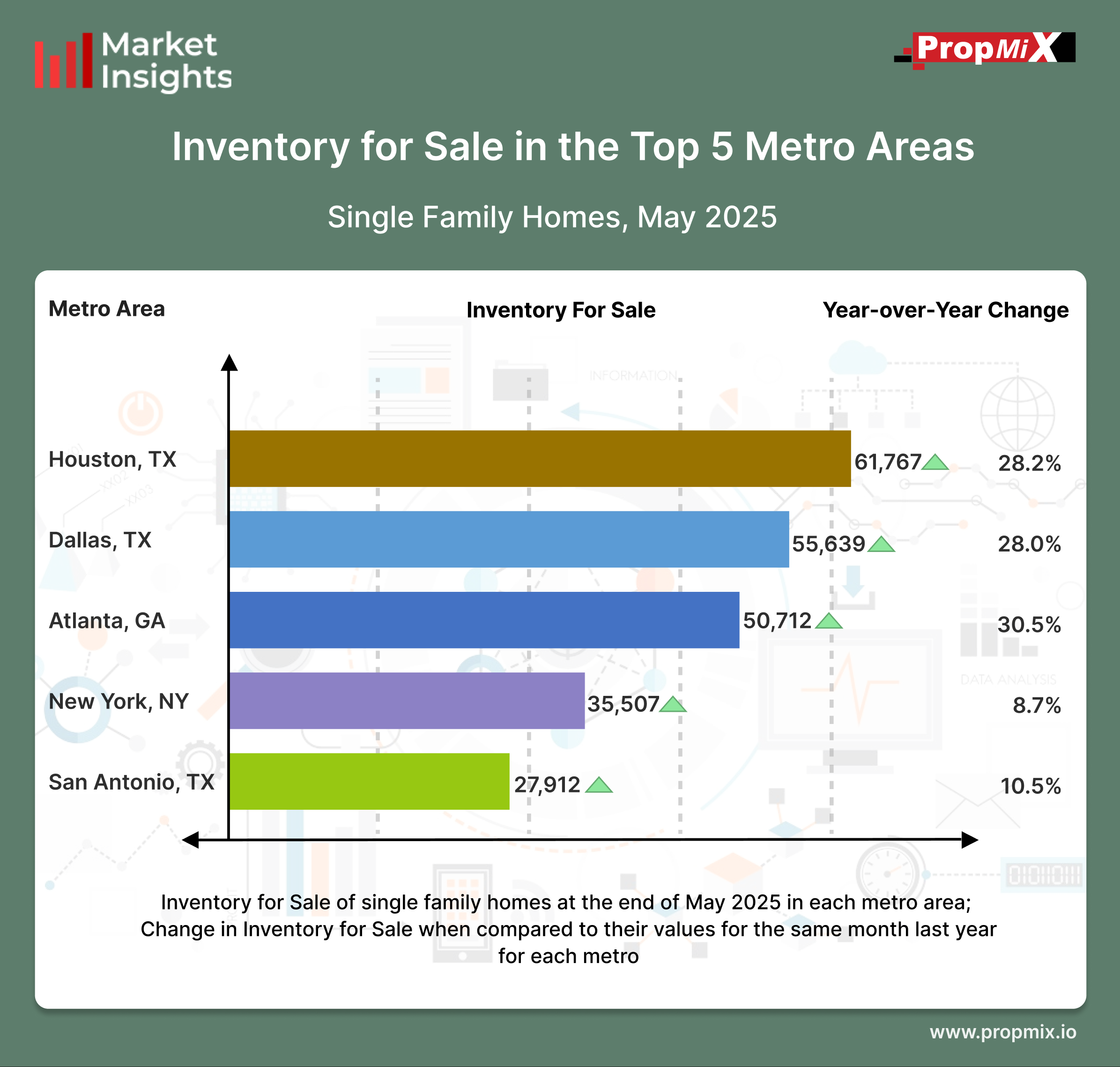 For a detailed view of all 30 metro areas that we track and more insights, visit our Interactive Market Insights page. Learn more about the metrics in PropMix Market Insights.