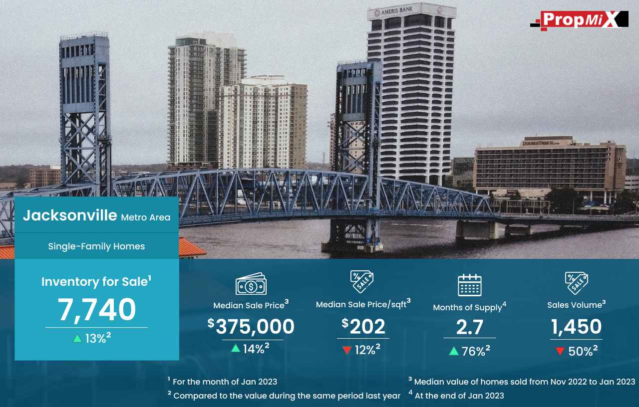 Jacksonville metro the inventory for sale in January 2023 increased by 13% when compared to same time last year.