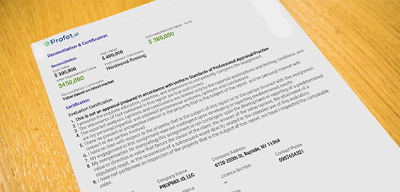Profet.ai has improved its value reconciliation section to enable the capture of multiple values for the property in conformance to the UAD 1004 and 1073 appraisal forms. In addition to the the estimated value an appraiser can also provide a value subject to improvements, repairs or inspection and describe the conditions for such values. In addition, a final reconciled value can be computed for any valuation.
