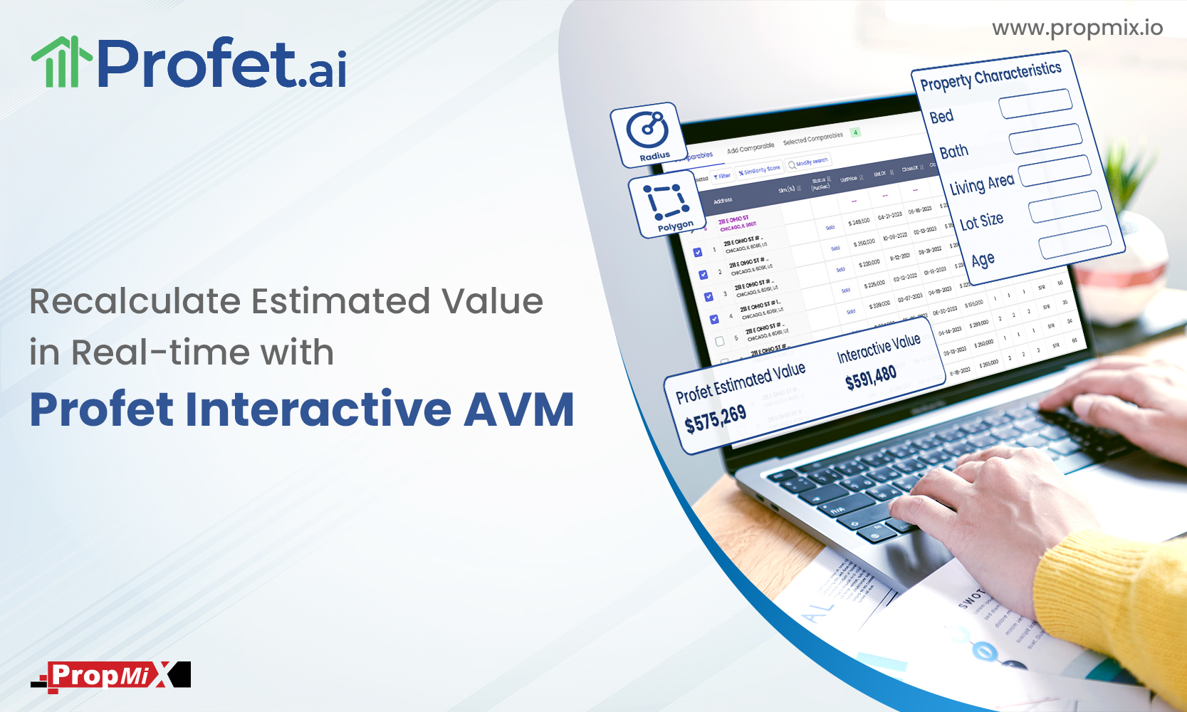 NEW YORK, NY / August 8, 2023 / – PropMix, an industry leader in housing and mortgage solutions, today announced a major upgrade to its real-time Profet Automated Valuation Model (AVM) with the introduction of its Interactive AVM to dynamically compute property values. These AVMs are delivered via Profet.ai, their flagship valuation platform that already supports traditional, desktop, and hybrid appraisals as well as numerous alternate valuation models.