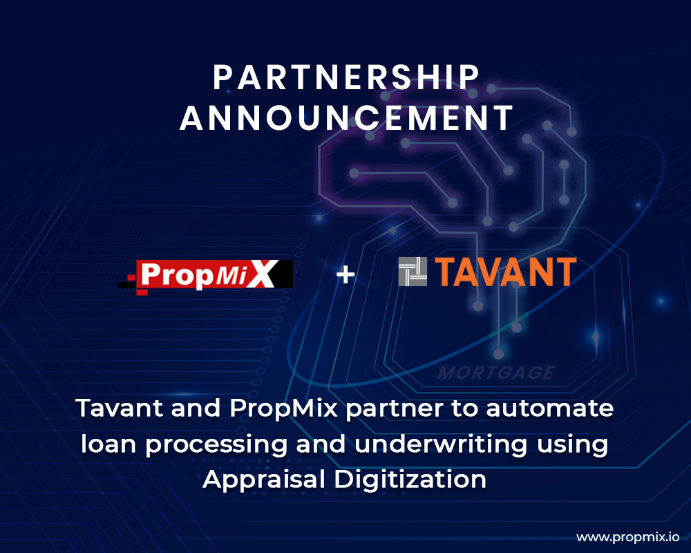 Tavant’s Document Analysis product within the Touchless Lending platform completely transforms the document-intensive mortgage origination process by automating recognition, classification, indexing, splitting, extracting loan data, and eventually, contextualizing this data for algorithmic processing and associating it with the borrowers on the loan. “PropMix’s Appraisal Digitization platform has helped us accelerate our product offering with a simple API interface to the complex process of extracting reliable data from appraisal PDFs,” said Mohammad Rashid, Head of Fintech Innovation at Tavant. “This partnership helps Tavant vastly improve (and for some cohort of loans, remove) the underwriters’ loan review process within the Touchless Lending loan manufacturing pipeline.”